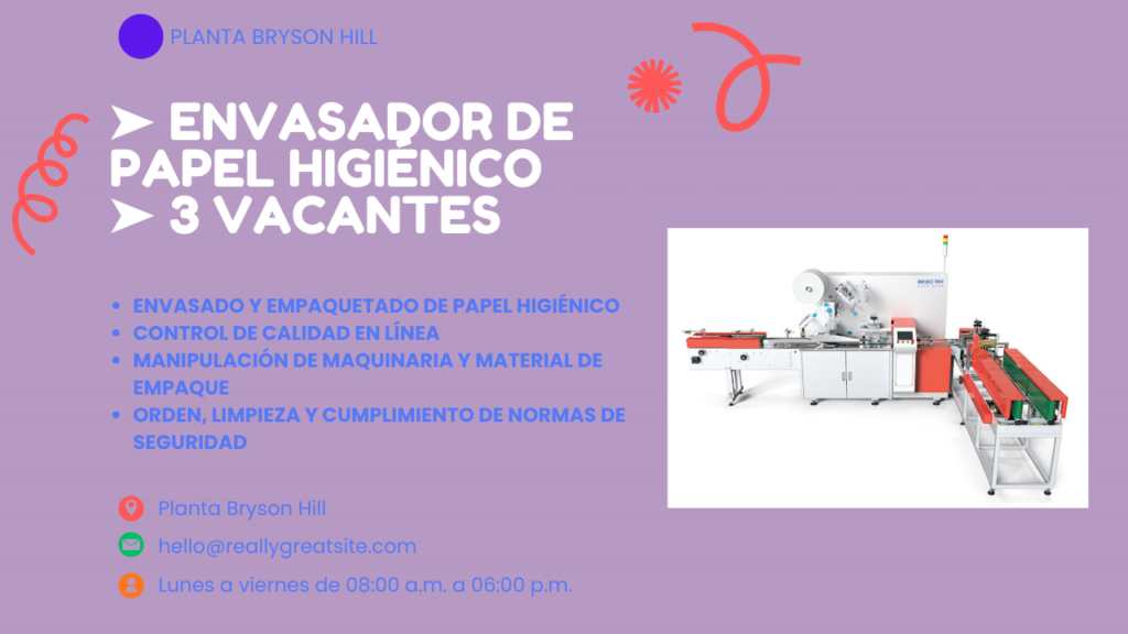 Puesto: Envasador de Papel Higiénico (3 Vacantes) Referencia: Planta Bryson Hill – Cajamarquilla Objetivo del Puesto Se ofrece empleos en